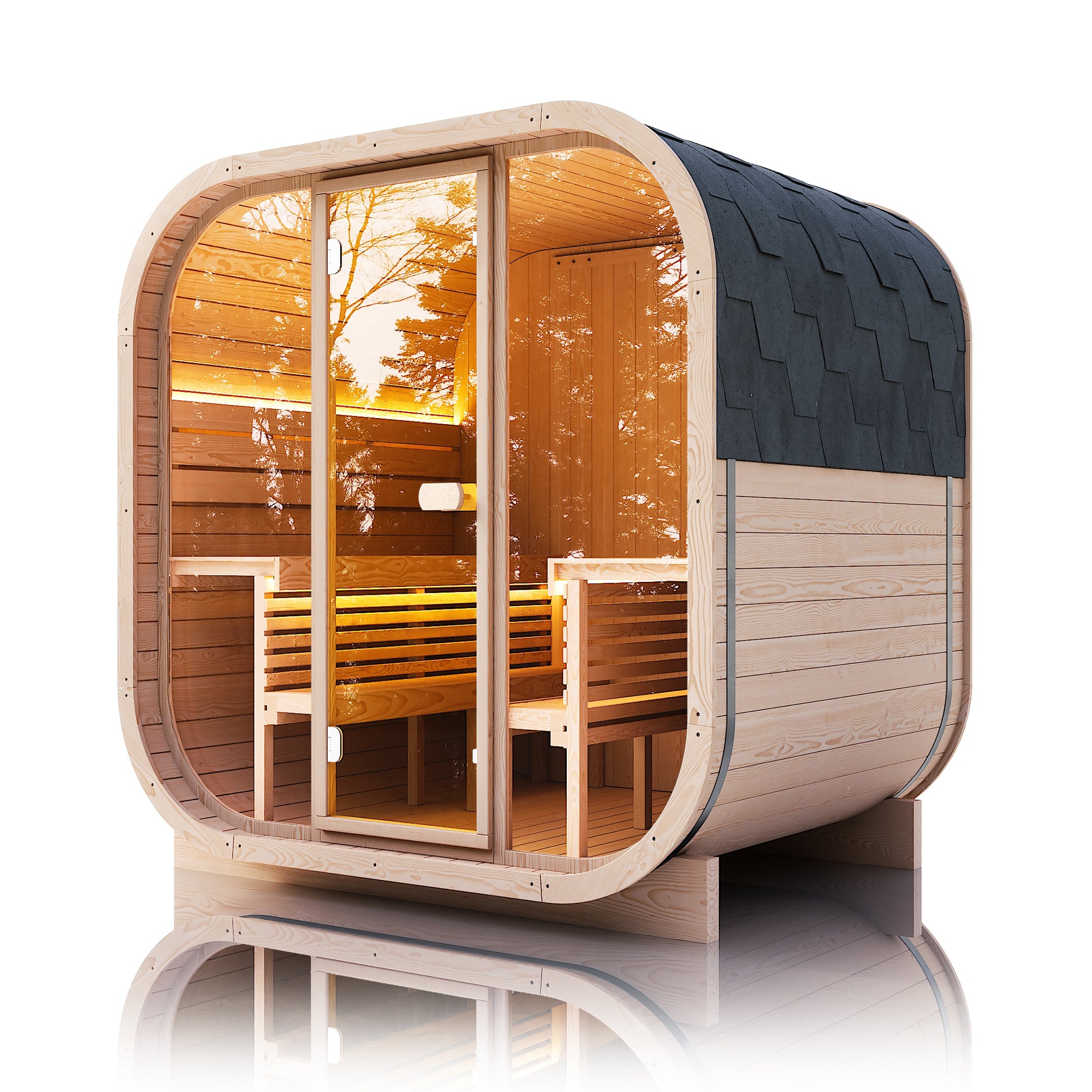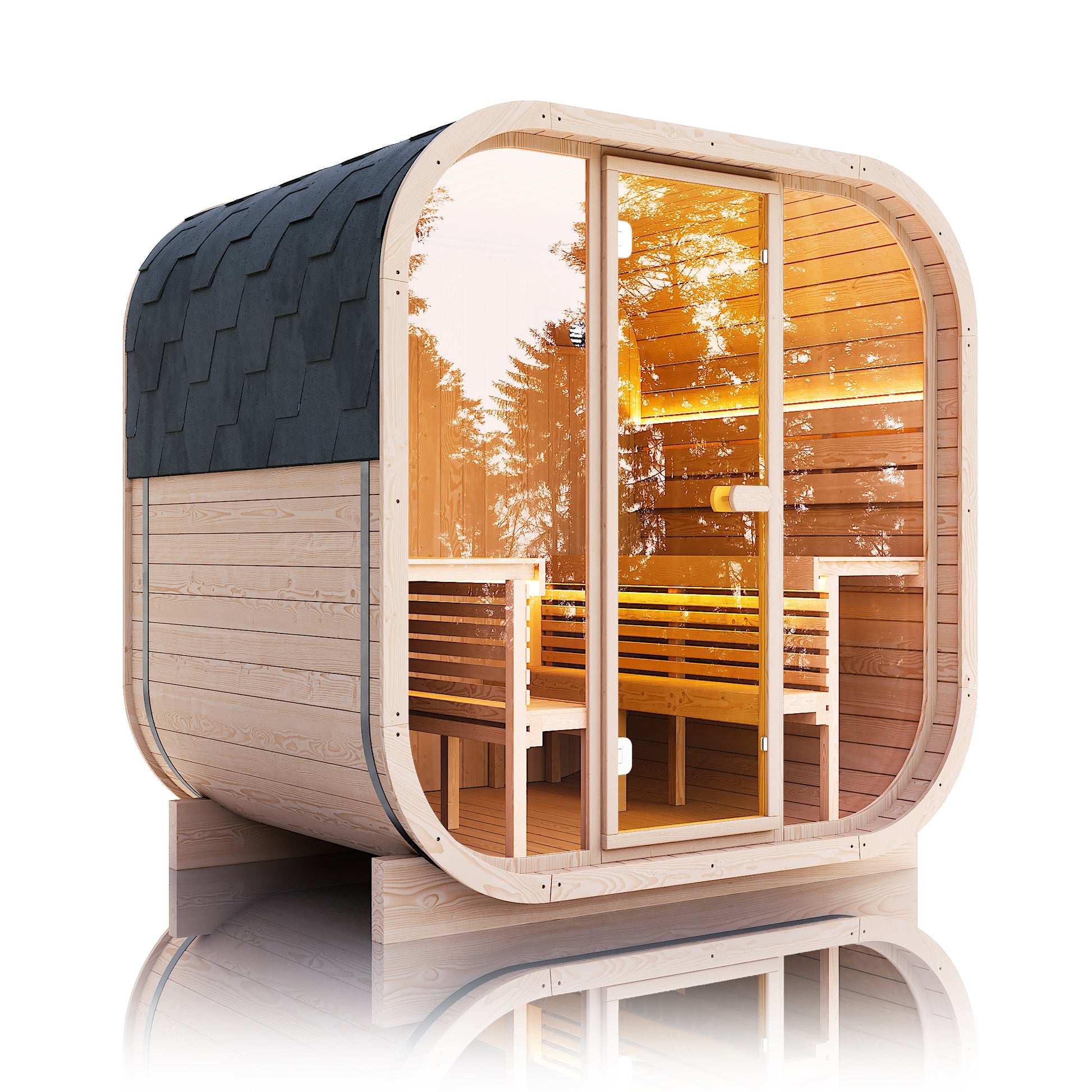 The Rambler can be used in a variety of spaces — indoors, in a dedicated sauna room, or in a protected outdoor location (ensure appropriate electrical and structural site prep).